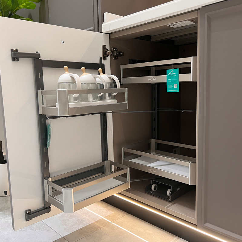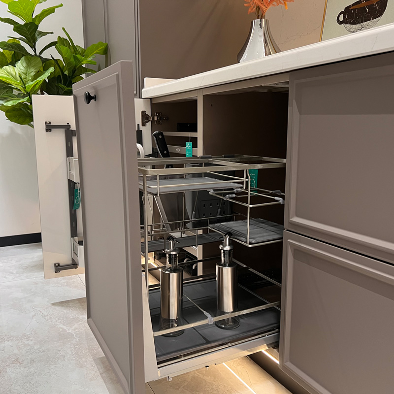 Le matériel fonctionnel peut être choisi en fonction de vos coutumes et de votre style de vie. L'espace de stockage peut être grand avec les matériels fonctionnels appropriés, rendez votre cuisine toujours propre et bien rangée.