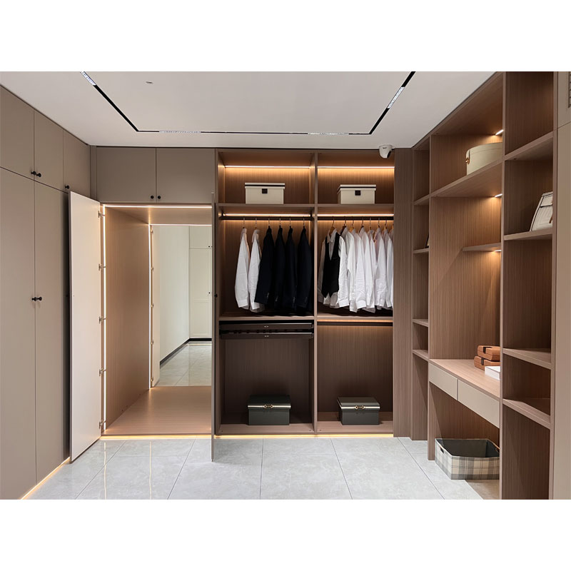 La garde-robe blanche est très populaire. Nous choisissons des matières premières de haute qualité et avons un travail de traitement excellent et méticuleux. Les ensembles de différentes portes d'armoires coulissantes peuvent également être personnalisés selon différentes formes. Pendant ce temps, les pièces de connexion du matériel de charnière sont solides et peuvent être assorties à des lampes, plus pratiques pour assortir les vêtements.