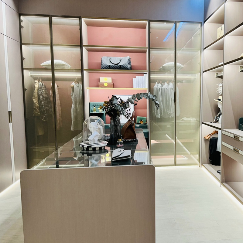 Nous sélectionnons l'aluminium qualifié et les différentes couleurs de vitrage personnalisées pour nos armoires de chambre et dressing en verre de luxe.Sinoahest un fournisseur professionnel en Chine pour le placard en verre de luxe pour le dressing et la chambre. Le matériau peut être utilisé pour de nombreux espaces différents, assorti à la lumière LED, donne à votre maison un effet luxueux.