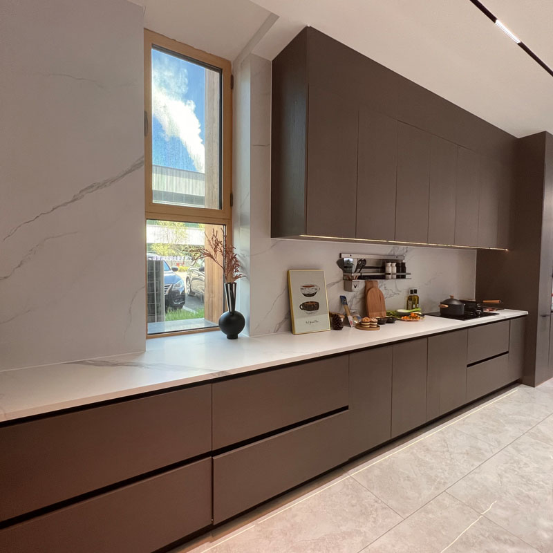 Qingdao Sinoya Co., Ltd. est heureux de vous fournir des armoires de cuisine en laque UV stratifiée au design moderne.