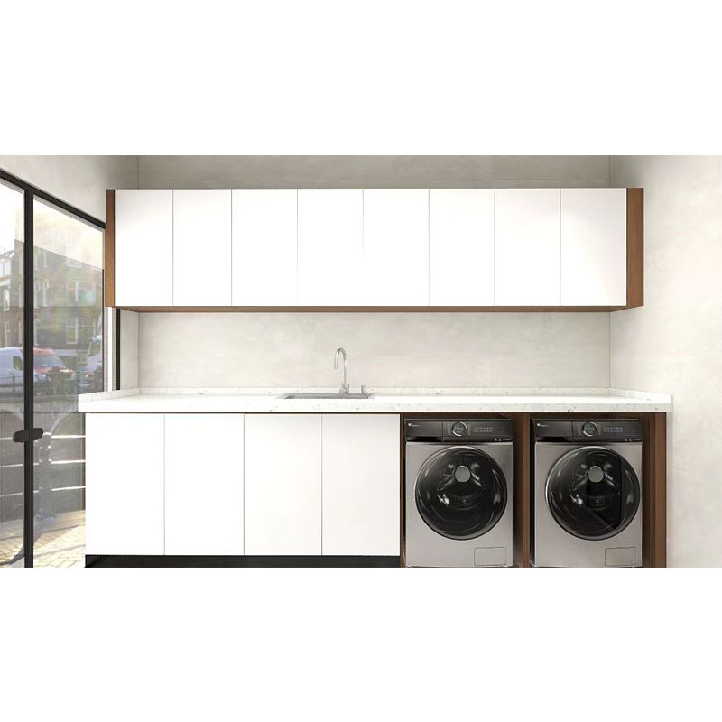 Les armoires de buanderie modernes que nous produisons sont fabriquées en bois massif et en panneaux de particules imperméables aux couleurs malémine, PET et laque.