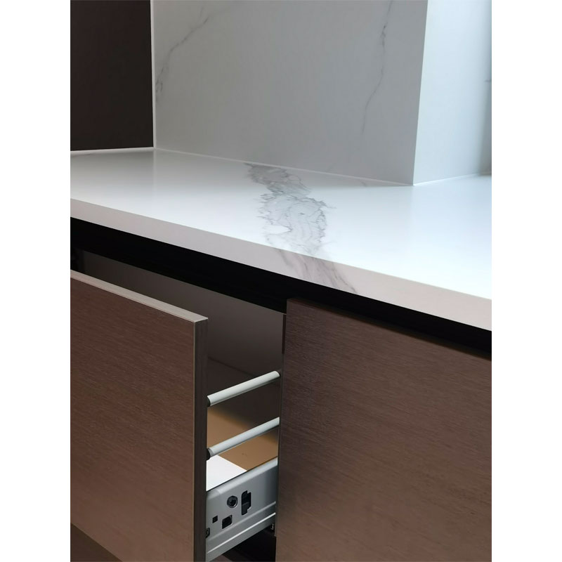 Le plan de travail des armoires de cuisine en stratifié haut de gamme de la cuisine intelligente est fait de pierre de quartz, qui est lisse au toucher, belle à regarder, facile à nettoyer, solide et durable.