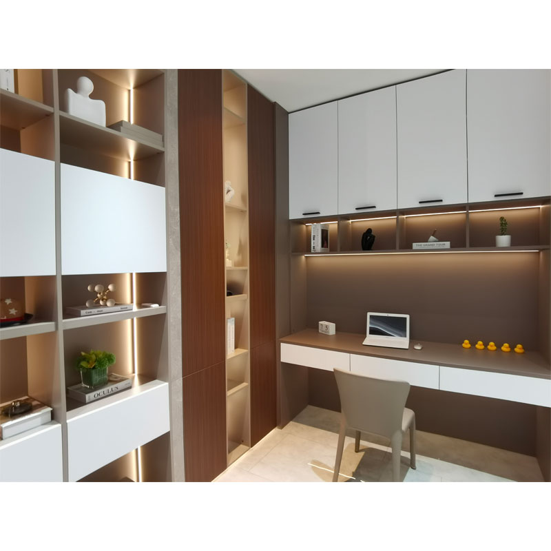 SINOAH s'engage à fournir des solutions de chambre d'étude avec des idées plus créatives. Cet ensemble d'armoires de chambre d'étude se concentre principalement sur les personnes qui ont souvent besoin de travailler ou d'étudier à la maison. Il combine des placards, des armoires de rangement, des vitrines, des étagères, des bureaux et des lits sans avoir besoin de les assortir par vous-même, assurant ainsi la cohérence du style de la pièce. De plus, la conception à plusieurs armoires offre beaucoup d'espace de stockage pour garder tous les articles en ordre et garder la pièce propre et belle.