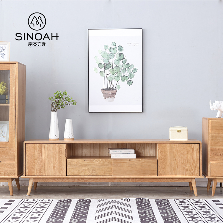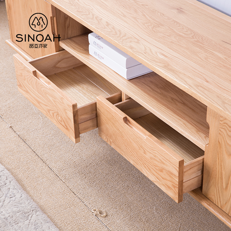 Sinoahest un leader professionnel China Nordic Oak Range Nice Tv Cabinet fabricant avec une haute qualité et un prix raisonnable. Le joli meuble TV, un meuble TV en bois massif simple et à la mode, est composé de chêne blanc, de bois naturel et de peinture de protection de l'environnement, avec une belle texture, une texture fine et lisse et une forte capacité de stockage. Glissière en bois au design unique et aux caractéristiques d'apparence évidentes : la plaque inférieure fait 20 mm de plus que le panneau latéral