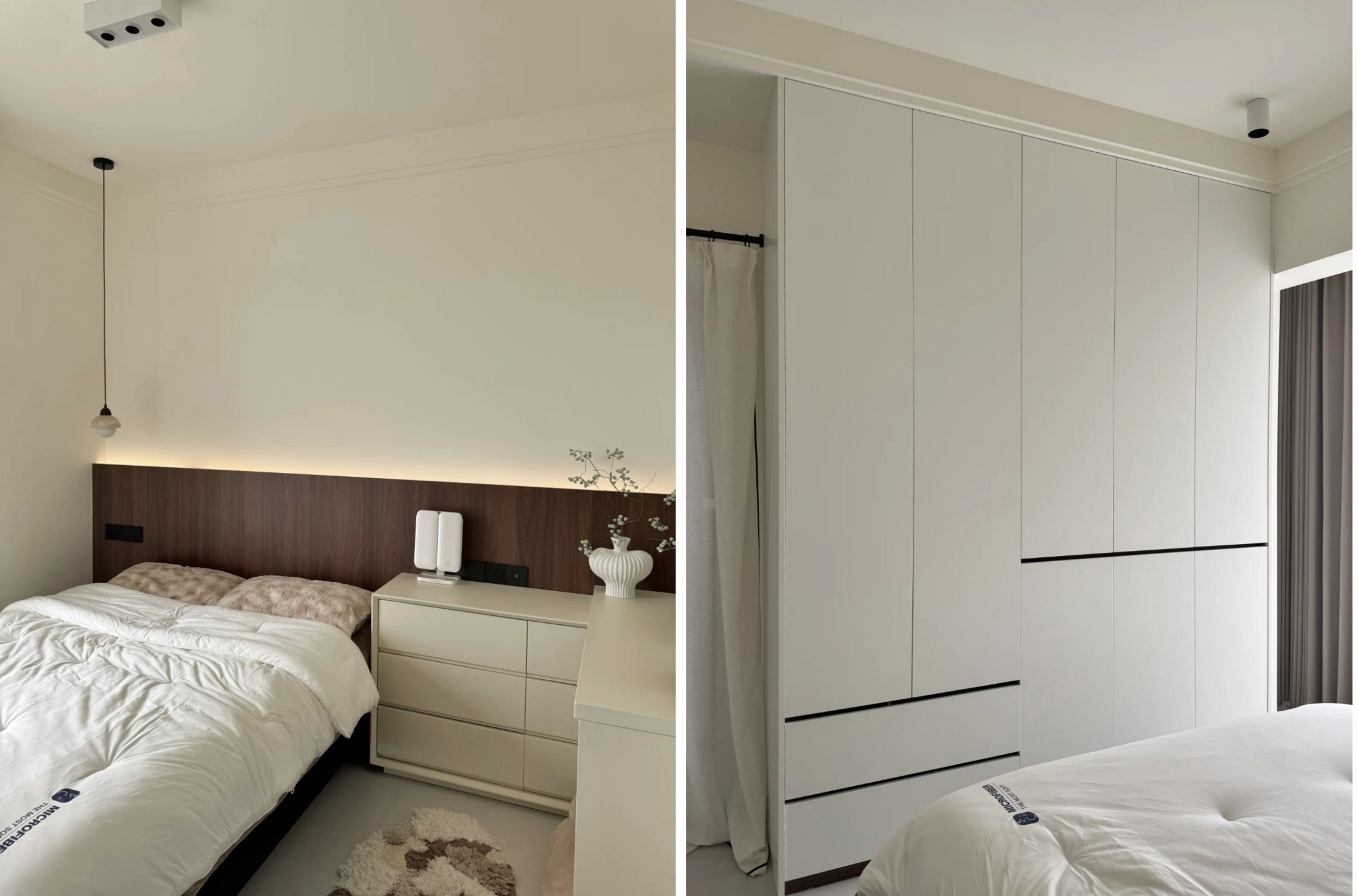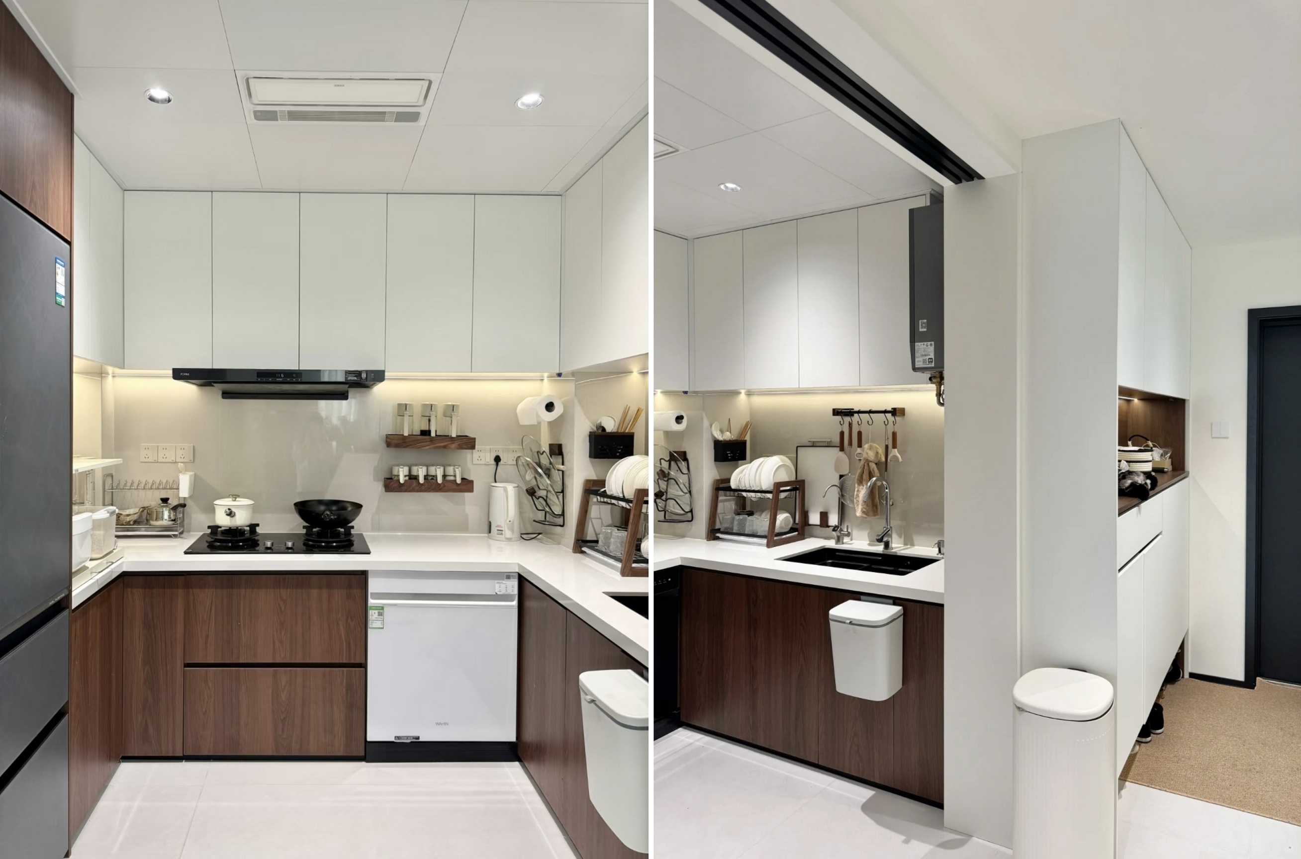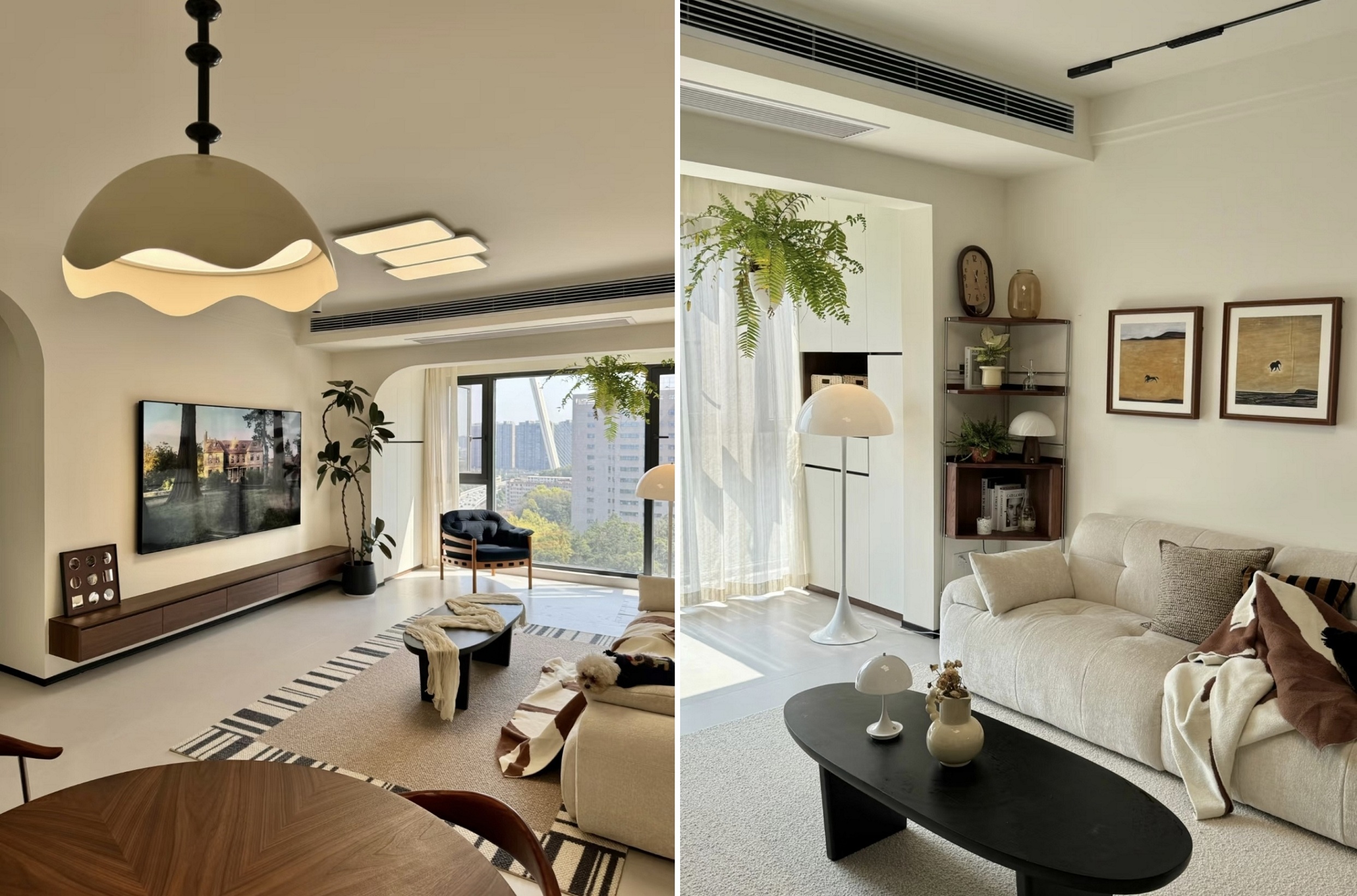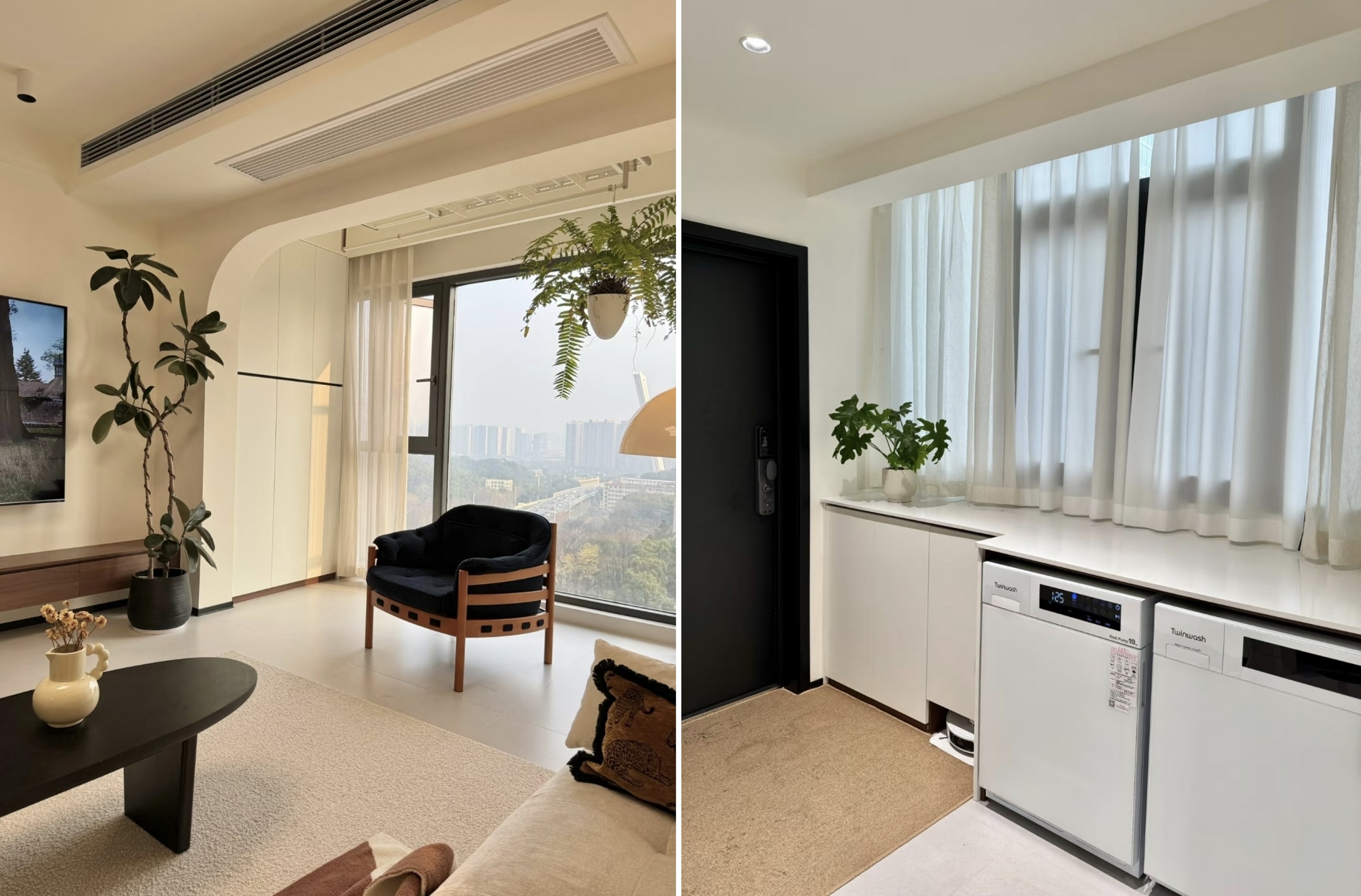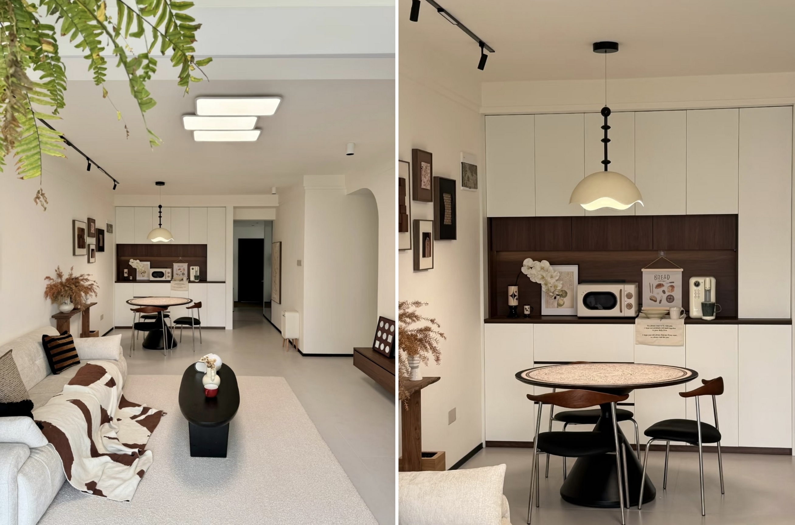 Pouvez-vous croire que cette maison ne représente que 90 mètres carrés, compte tenu de sa palette de couleurs noire, blanche et café élégante?